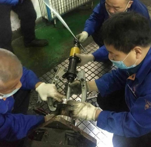 有位師傅設計出了一種輔助工具,使得液壓三爪拉馬有了著力點,在大家的共同努力下用10噸液壓拉馬完成了空心套的拆卸,并順利的完成軸承的維修更換工作,減少了維修時間,節約了維修成本,為開工生產爭取了寶貴的時間。